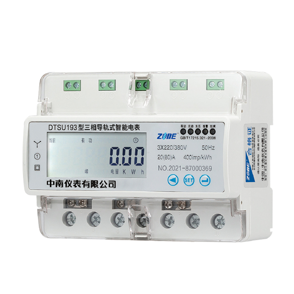 dtsu193 型三相四线电子式电能表(导轨)是采用先进微电子技术及 smt 生产工艺制造的产品,本产品用于额定频率 50hz(也可生产额定频率 60hz)的三相交流有功电能的计量。